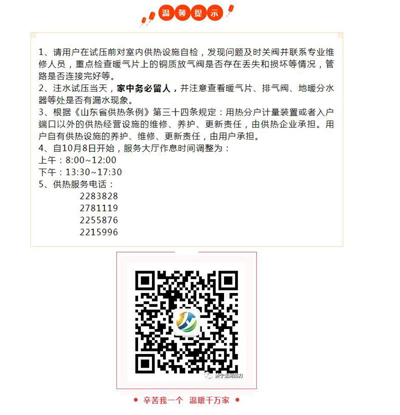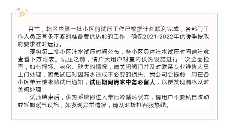 濟寧運河熱力有限公司第二批小區(qū)試壓通知